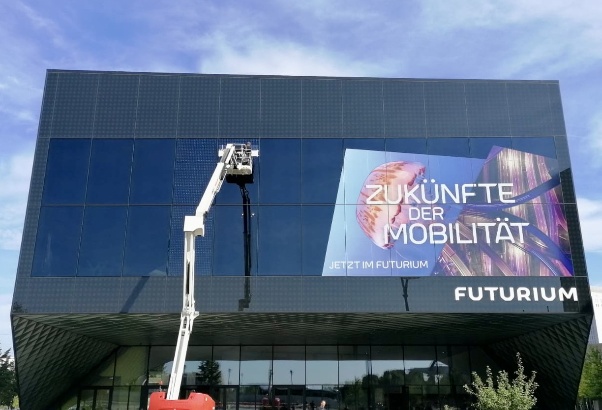 Die patentierte Vogelschutz-Folie der SEEN AG bietet eine elegante Möglichkeit, Vogelschutz und Glas zusammenzubringen. Die Folie markiert die Glasflächen an Gebäuden mit einem für Vögel sichtbaren Raster. Für das Futurium hat UNIKAT über 100 Fensterflächen in unterschiedlichen Formaten unproblematisch mit SEEN Elements nachgerüstet.